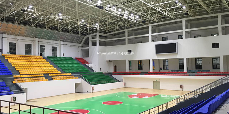 因为篮球馆是一个立体空间,所以,室内篮球馆照明必须有较高的亮度和较强的色彩对比,通过计算机计算的灯光控制点要有充足的照度,保证照度均匀,色温和显色性必须满足电视转播的需求,同时,对眩光加以控制。